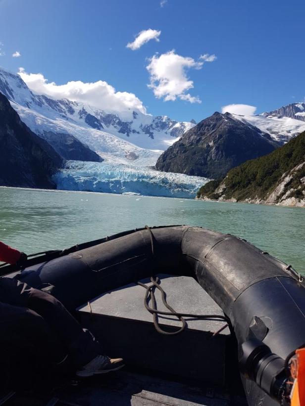 Navigation de nuit à travers le bras nord-ouest du canal de Beagle pour entrer et débarquer dans le fjord Pía. A 9h nous embarquons pour une excursion jusqu’au mirador d’où l’on peut observer le glacier du même nom, et sa langue principale qui s’étend du haut cordon montagneux jusqu’à l’océan.