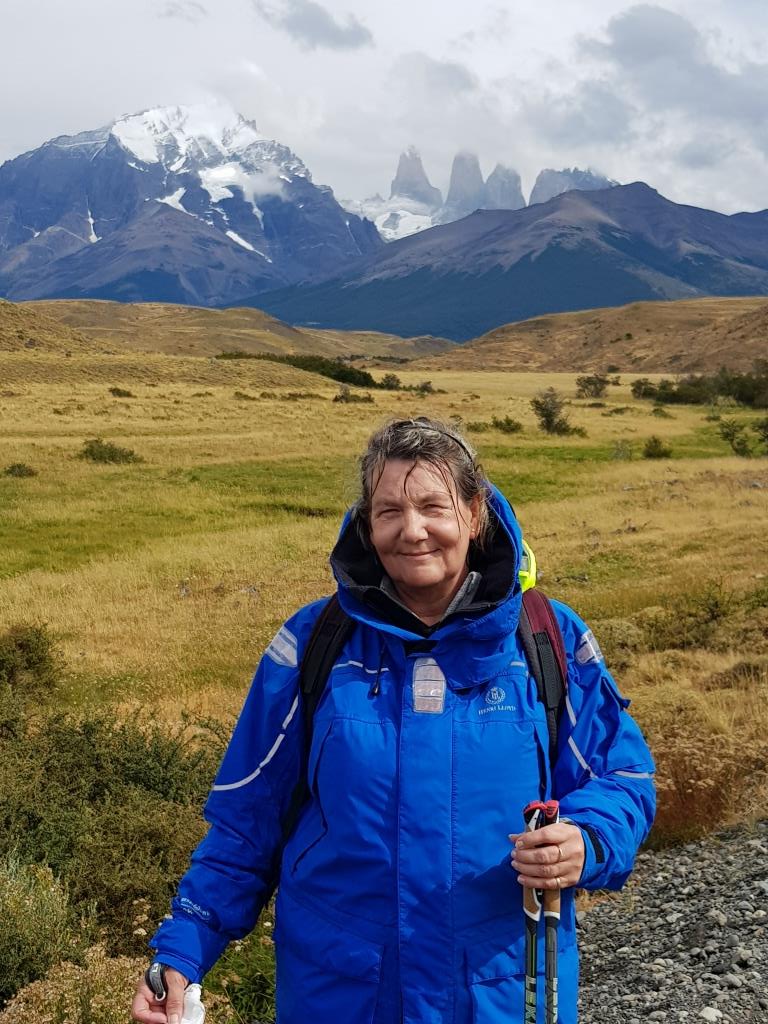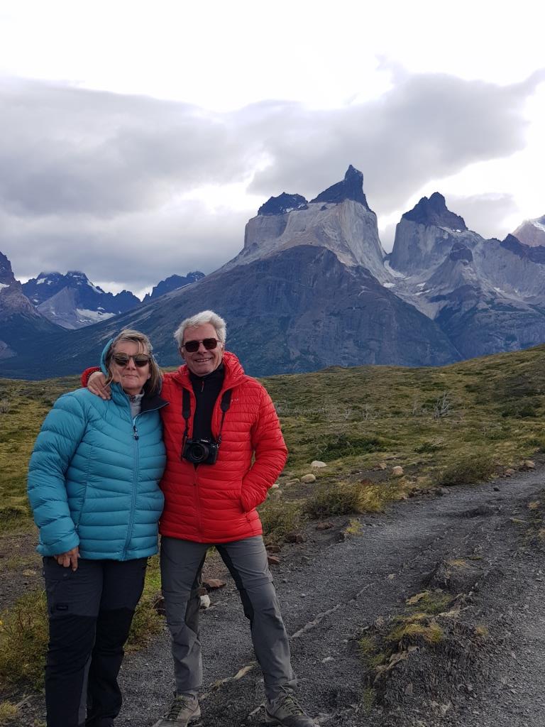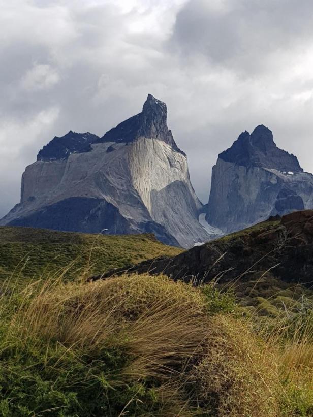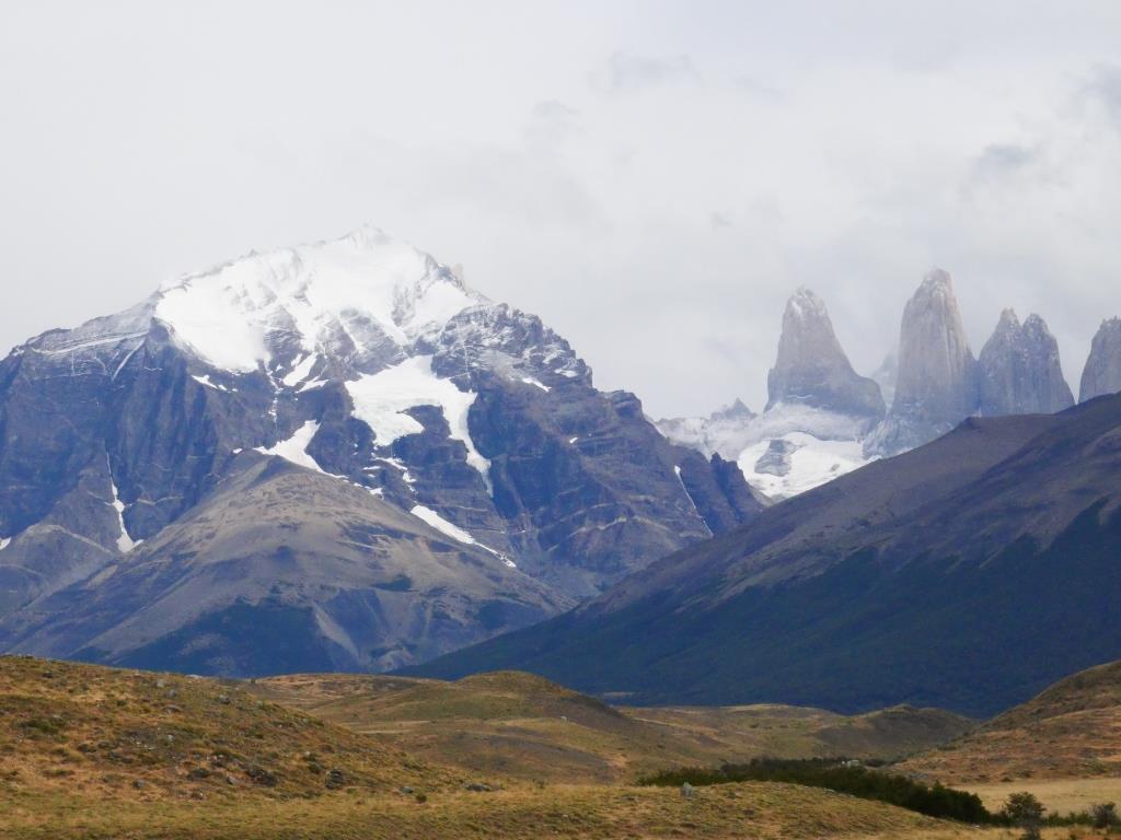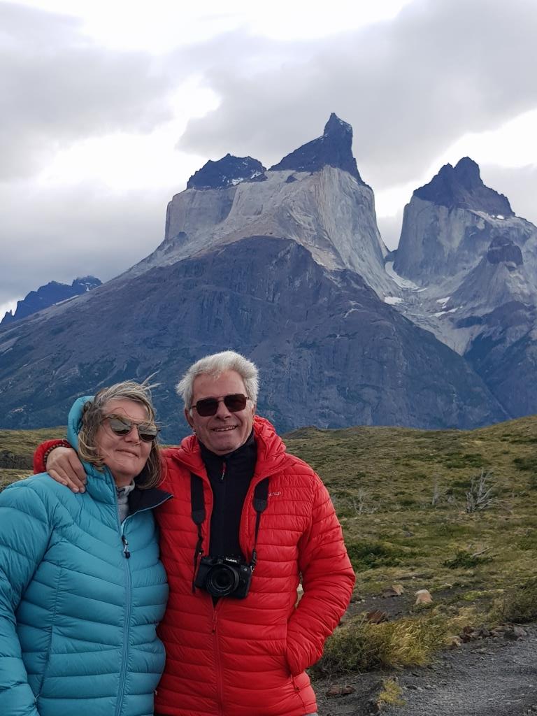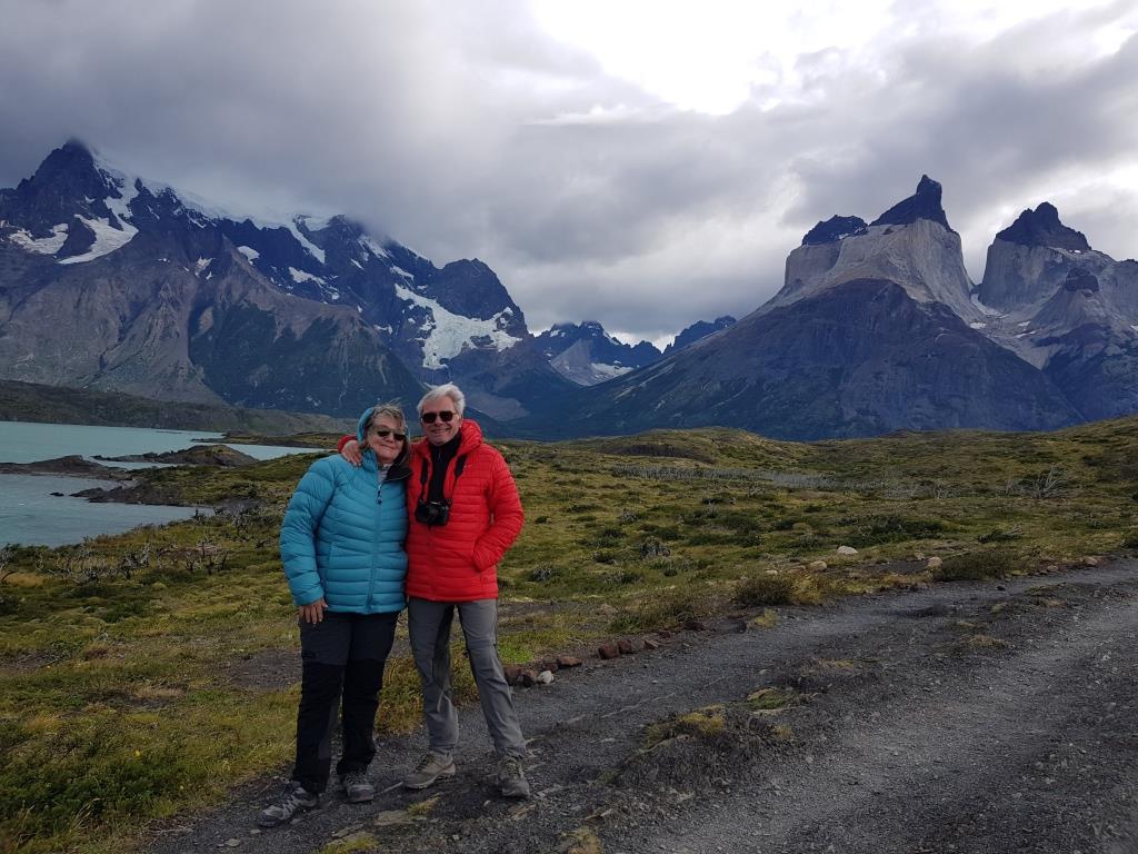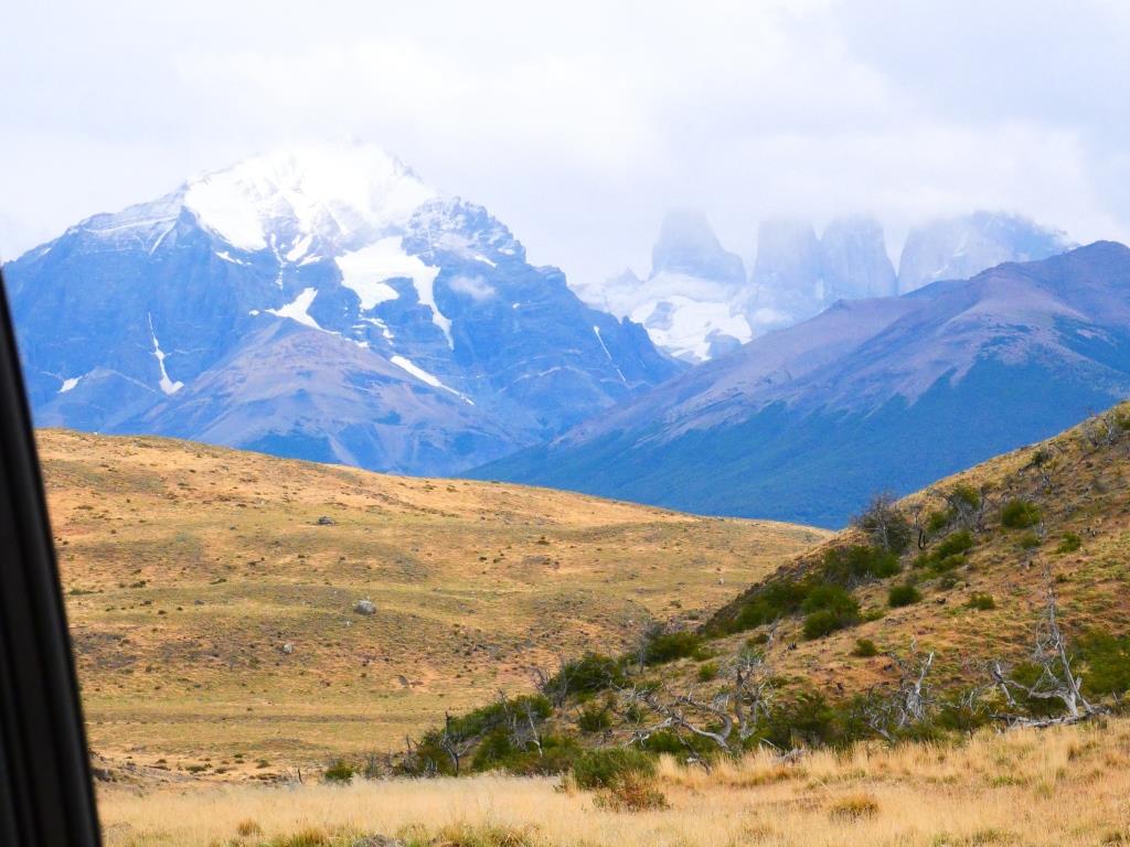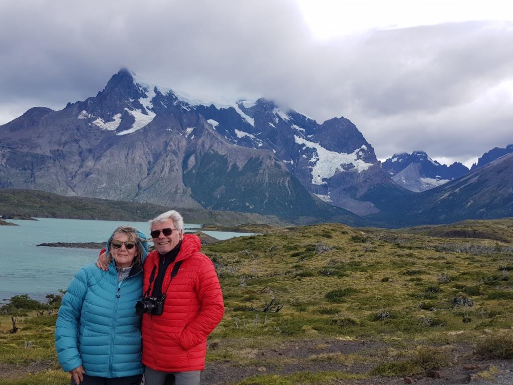 Le lendemain de notre arrivée, notre guide francophone vient nous chercher à l’hôtel à 8h car nous avons 1h30 de route pour être au Parque National Torres del Paine avant l’arrivée des gros bus. En route, la guide nous explique que Paine signifie bleu en langue tehuelche en raison de la couleur dominante. En effet, à voir toutes les tonalités de bleu que nous avons découvertes au cours de nos balades, je dois concéder que le parc porte très bien son nom de bleu. Le beau temps n’est pas au rendez vous, normal pour la Patagonie, nous commençons par le lac Amarga, nous y voyons des flamands roses.