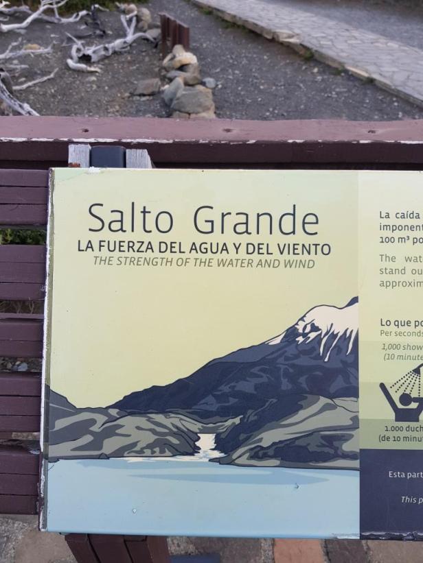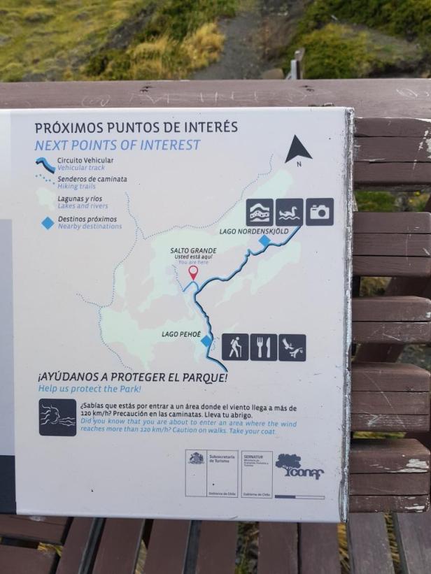 Nous allons ensuite à Salto Grande une chute d’eau située sur le río Paine, après le lac Nordenskjöld, elle s’est formée grâce à l’union naturelle entre le lacs Nordenskjöld et le lac Pehoé.