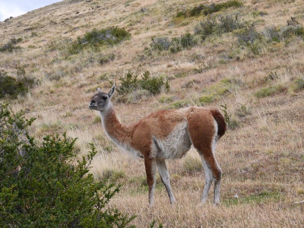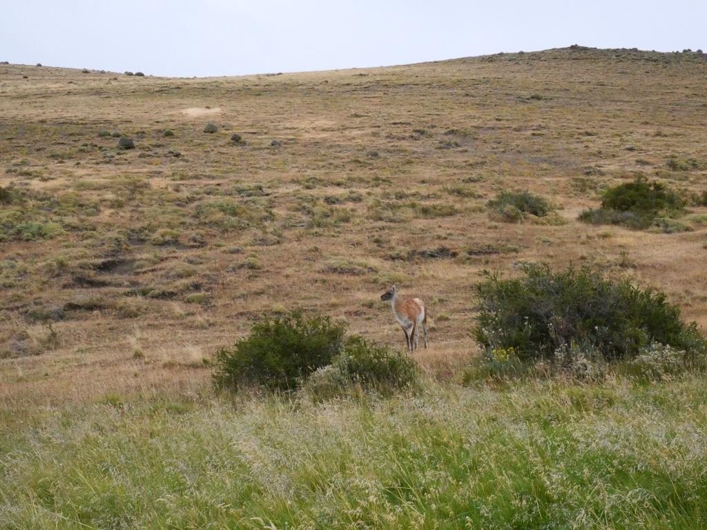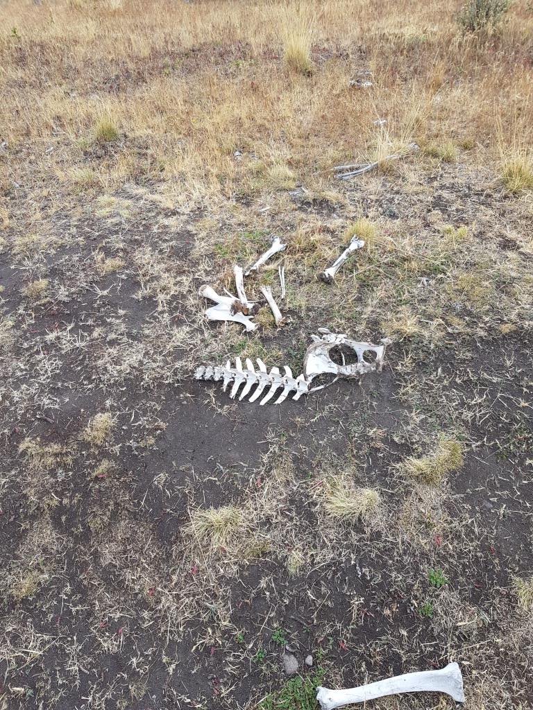 Nous partons ensuite pour faire une balade d’environ 2h sur le cañadon macho. Le temps est incertain aussi je m’interroge sur le fait de mettre ou pas ma parka antarctique, je joue la carte du beau temps alors que Carine est plus pessimiste et s’équipe pluie. En chemin nous croisons la carcasse d’un Guanaco qui a vraisemblablement servi de repas à un puma.