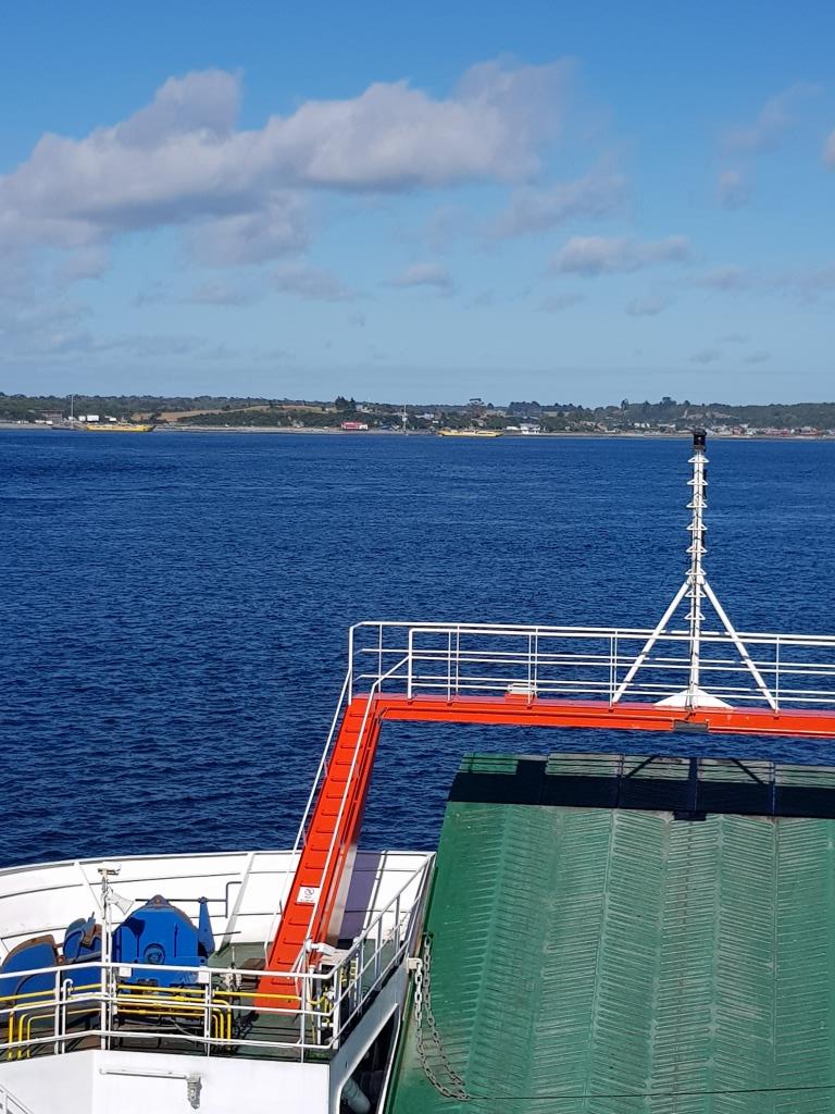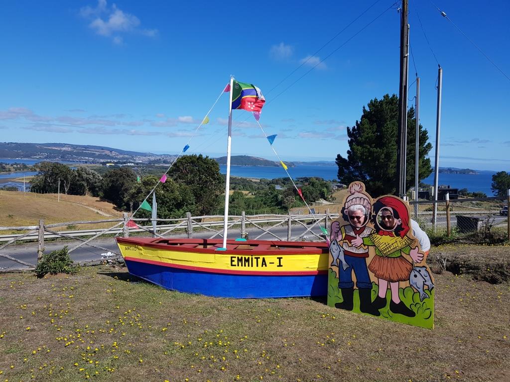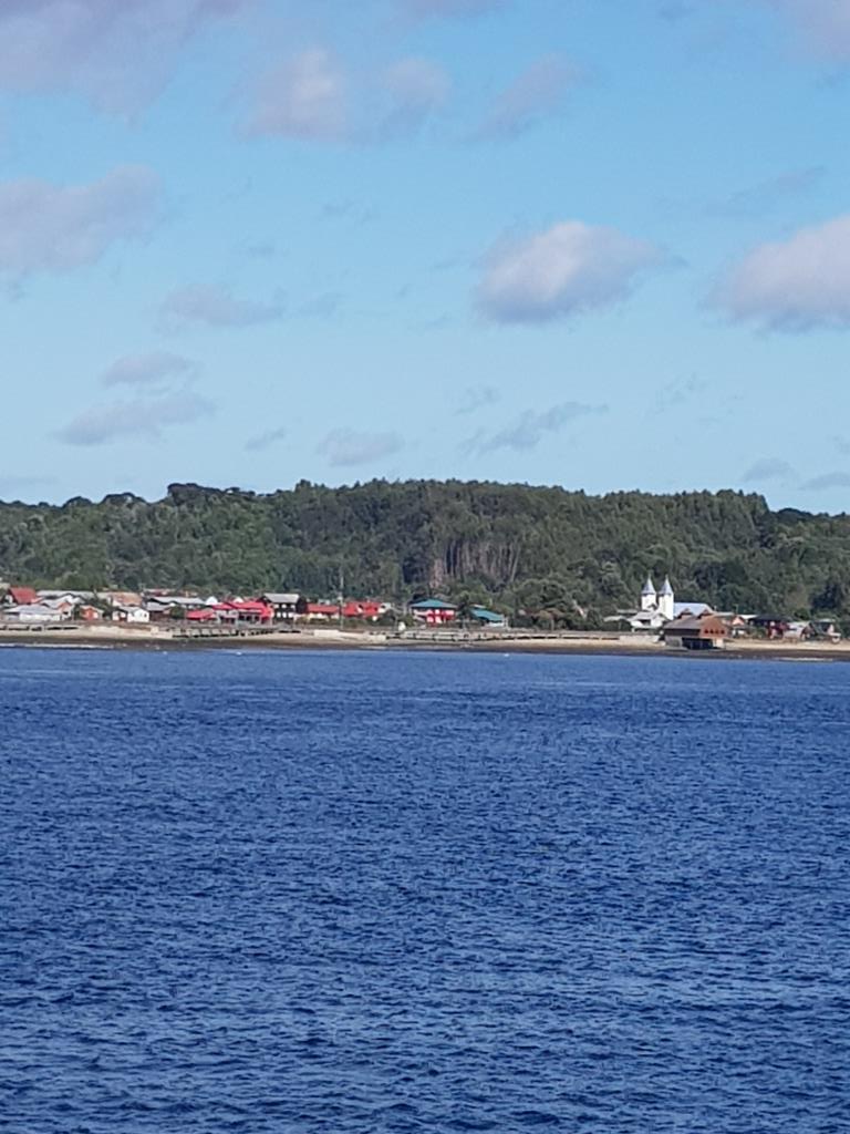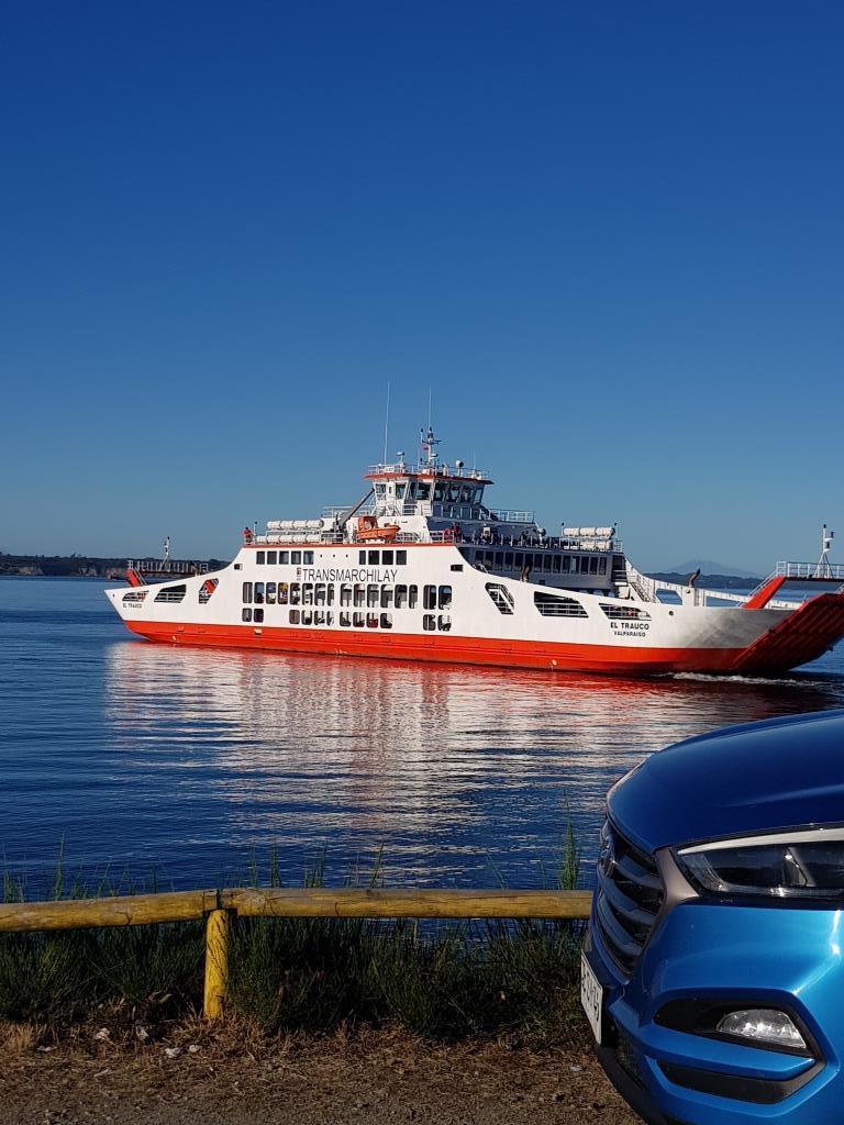 Aujourd’hui nous quittons l’hôtel à 10h pour aller sur l’ile de Chiloé ou île aux mouettes le nom vient du mot « huilliche » (en indien Mapuche) signifiant « terre des mouettes ». Départ de Puerto Varas, direction Pargua 75kms, pour prendre le ferry jusqu’à Chacao (35mn).