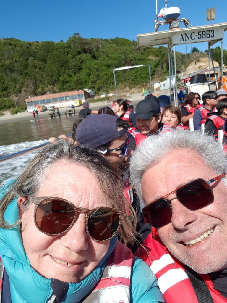 A l’arrivée sur l’ile nous prenons la direction de Puñihuil pour un tour en semi-rigide pour voir les pingouins. A 12h15 nous embarquons et voyons quelques manchots papou, 1 manchot de Humbolt et des cormorans.