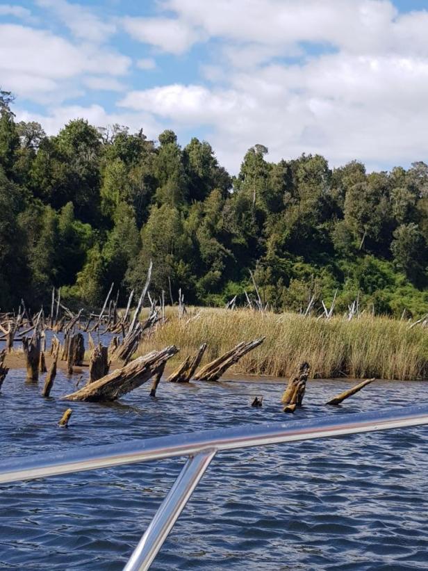 Nous prenons ensuite la route pour la rivière Chepu, où les paysages nous surprennent. Nous y faisons une balade en petit bateau de 2h sur cette rivière pour accéder à une lagune, véritable havre de paix de multitudes d’oiseaux. Nous voyons également un rat chilien d’eau.