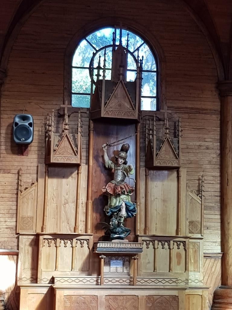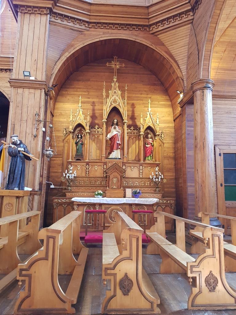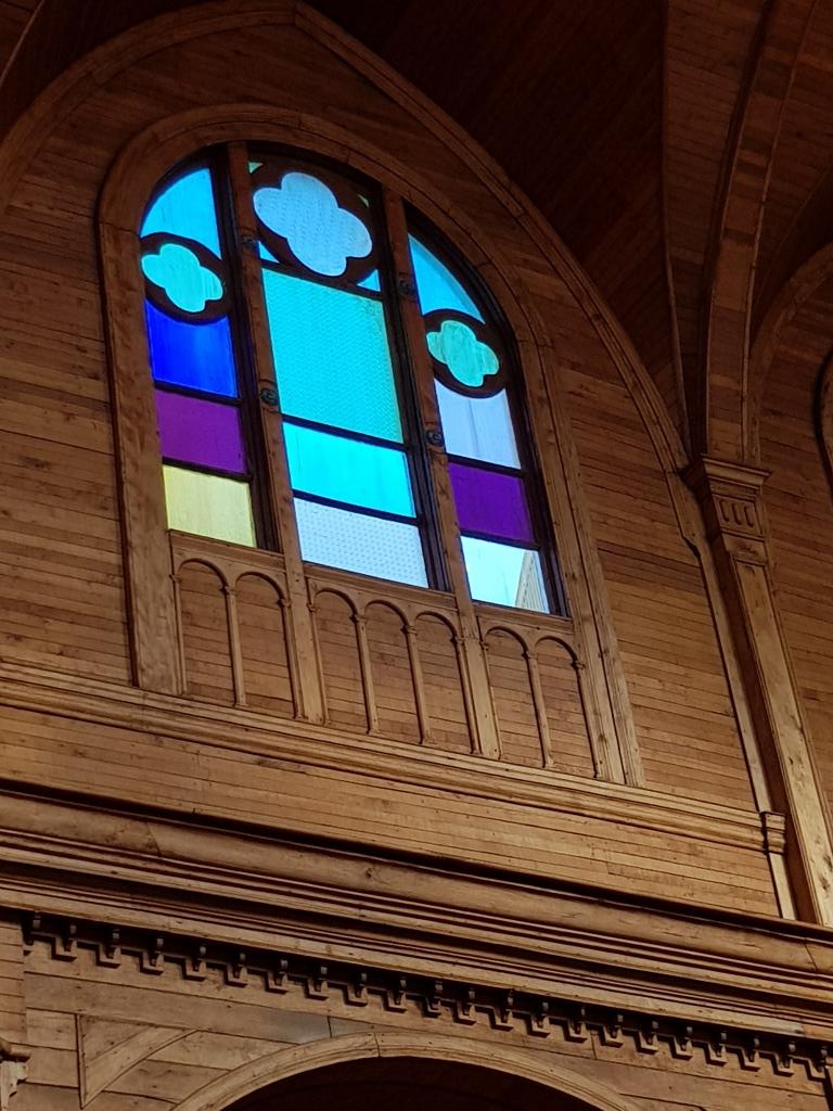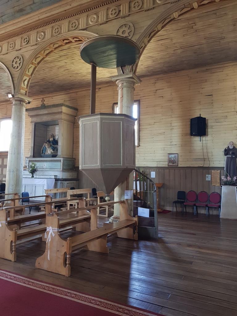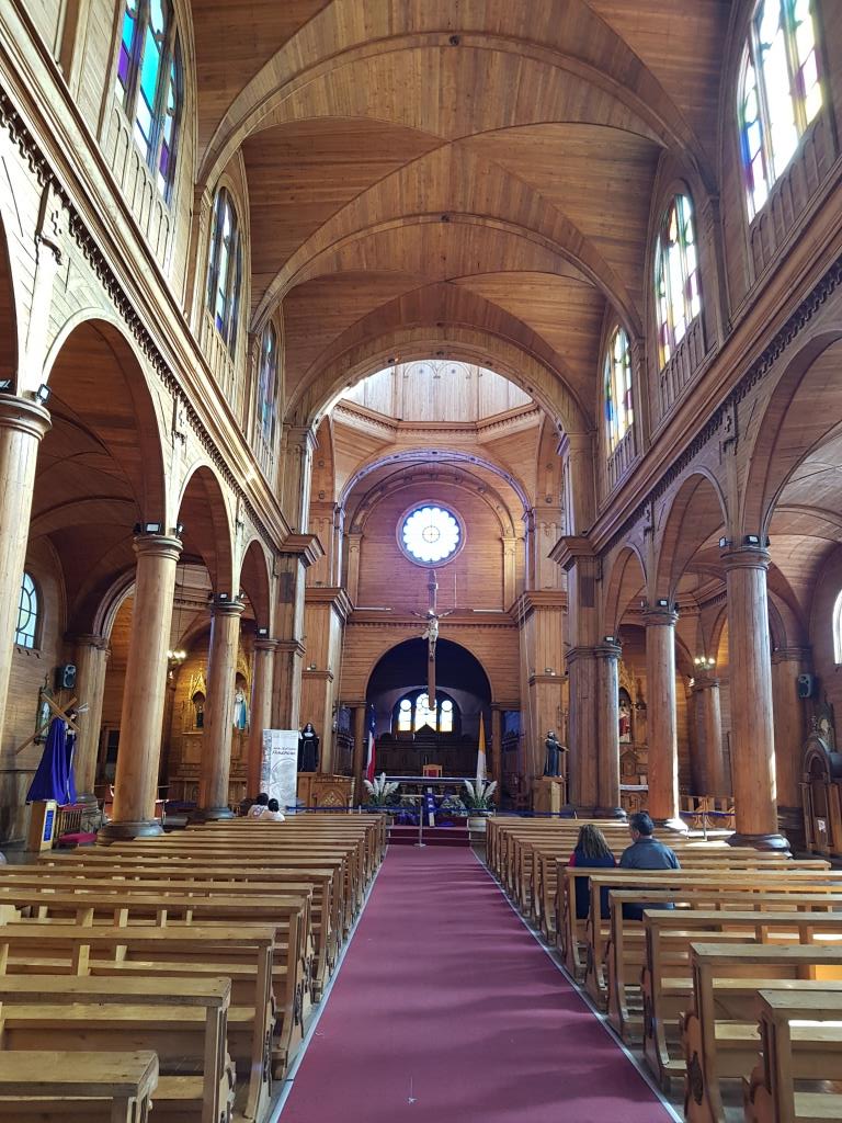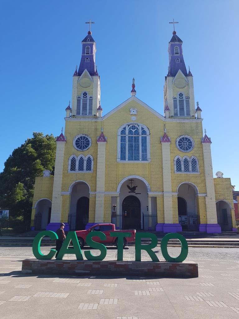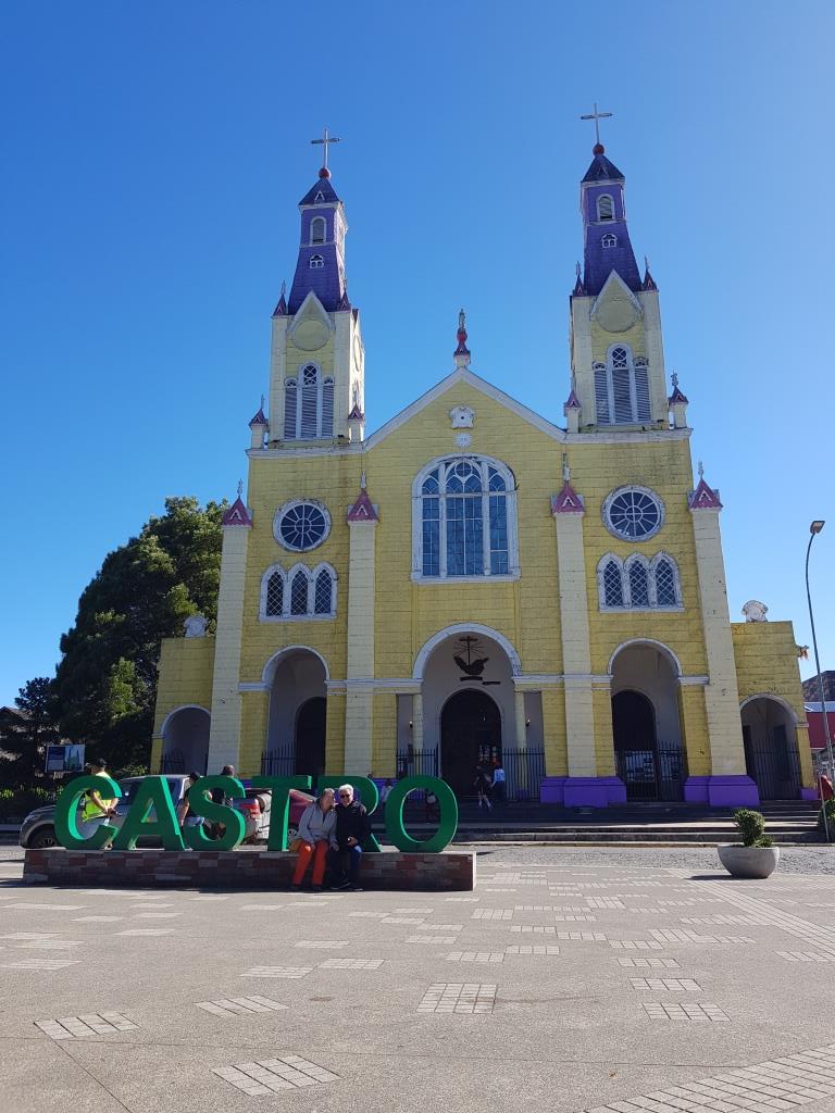 Ce 4 mars nous allons commencer par la visite de la magnifique ville de Castro. Nous quittons l’hôtel à 9h30 et prenons la direction de la plazza de Armas pour visiter la cathédral San Franscisco. C’est l’église la plus grande de l’île de Chiloé. Construite en 1910, par un architecte italien, ce monument mauve et jaune devait être battit en béton, mais finalement on opta pour le bois, malgré les nombreux incendies de l’époque. L’intérieur est magnifique, tout en bois sculpté. Probablement la plus belle église de l’île de Chiloe.